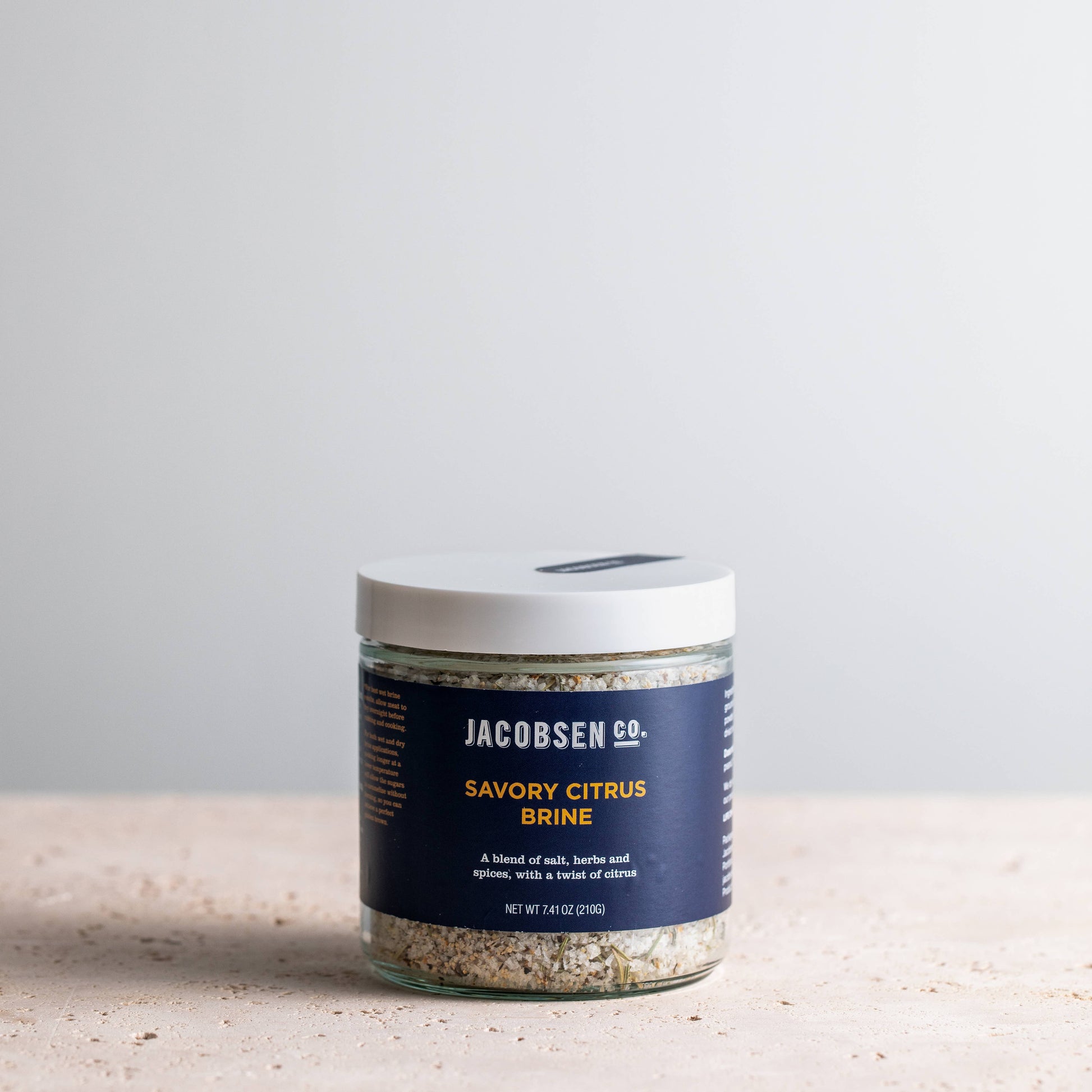 A blend of salt, herbs, and spices, with a twist of citrus. Perfect for wet and dry brining any time of the year. Say "Bye" to Clumping 👋 Our Savory Citrus Brine is back for the holiday season and better than ever! We reformulated our mixture with brownulated, aka pourable, brown sugar, which has less moisture content than typical brown sugar. The result? No clumps and a more even brining experience! For dry brining, 1 jar is sufficient for up to a 14lb bird. For wet brining, 1 jar is sufficient for a whole chicken, 1-2 turkey breasts, or a whole turkey up to 8lbs. For whole turkeys 9-14lbs, you will need 2 jars of brine.